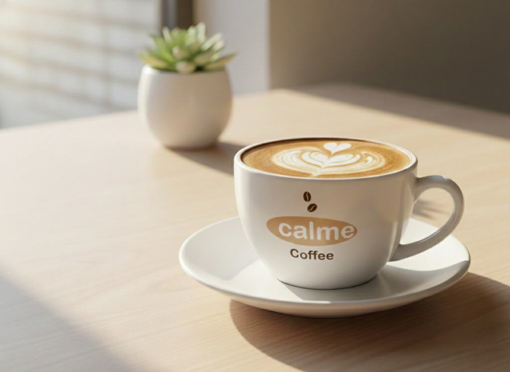 ブランドのコンセプトである「一日の始まりを応援し、午後はcalmeなひと時を過ごす」というイメージをロゴで視覚化し、ターゲットが直感的に親近感と落ち着きを感じられるデザインに仕上げています。