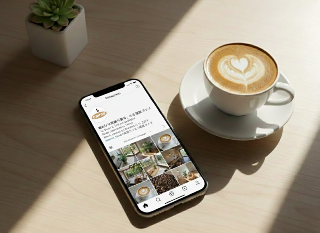 架空カフェ「Cafe Calme」のロゴを制作しました。ターゲットは20〜30代女性で、通勤・通学前の朝や午後のリラックスタイムに訪れる層を想定。ロゴは安心感と親しみやすさを意識して丸みのある書体を採用し、配色は焙煎したコーヒー豆の色とミルクの白を基調にベージュを加え、カフェラテのまろやかさを表現しました。